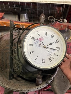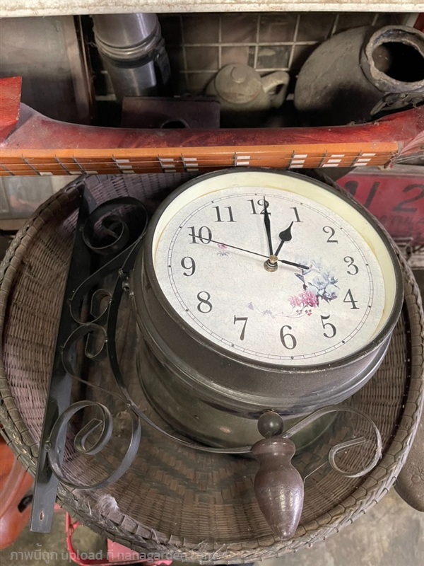 เปิดสะสม นาฬิกาโบราณ นาฬิการถไฟโบราณ (Vintage Wall Clock) หน้าปัดสองหน้า ขนาดหน้ากว้าง8นิ้ว กรอบโลหะ งานเก่าย้อนยุค ลายดอกไม้