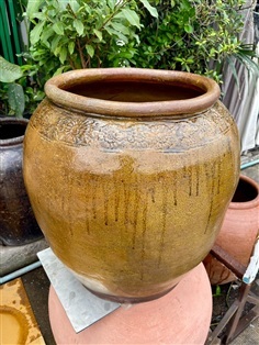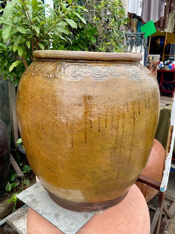 โอ่งดินเผา แบบเคลือบผิว สีมันปู ขอบลายดอกไม้ มีเอกลักษณ์เฉพาะตัวที่ไม่เหมือนโอ่งอื่นๆ เป็นสัญลักษณ์แห่งความร่มเย็น มรดกวัฒนธรรมของไทยโบราณ ควรแก่การสะสมเก็บไว้ให้ลูกหลานได้เรียนรู้ศึกษาถึงเรื่องราวและการดำรงชีวิตของคนสมัยก่อน
