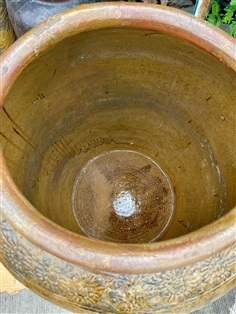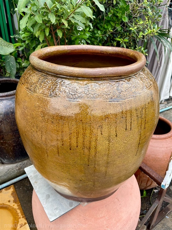 โอ่งมันปู โอ่งโบราณ สีมันปู ลายดอกไม้ ไซต์ใหญ่