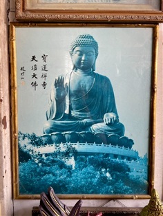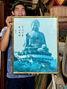 เปิดบูชา กรอบรูปถ่าย พระใหญ่เทียนถาน (Tian Tan Buddha) ซึ่งเป็นพระพุทธรูปสำริดขนาดใหญ่ที่ตั้งอยู่บนยอดเขามุกเยว่ (Mount Muk Yue) บนเกาะลันเตาในฮ่องกง รู้จักกันในชื่อ "พระใหญ่" (Big Buddha) สร้างเสร็จในปี 1993