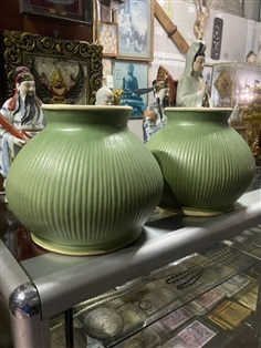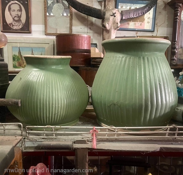 เปิดสะสม โถพลูเขียวไข่กา โถใบชะพลูโบราณ โถดินเผาน้ำเคลือบเขียวไข่กา อายุกว่า80ปี ผลิตช่วงสมัย รัชกาลที่5 ผิวสีเขียวไข่กา ทรงมะเฟื้อง และ ทรงกระบอก
