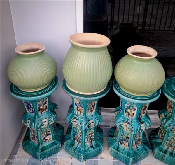 เครื่องปั้นดินเผาน้ำเคลือบโบราณ มาจากศิลปะของ ประเทศจีน สมัยก่อนนำเข้ามาโดยเรือสำเภา เช่น โอ่งไหหลำ โอ่งเซี่ยงไฮ้ โอ่งเขียวไข่กา ที่ใส่สินค้ามาขายแล้วทิ้งภาชนะไว้เป็นมรดกเก่าทางศิลปะและวัฒนธรรม เหมาะสำหรับอนุรักษ์สะสม ประดับบารมี ตั้งโชว์รับแขก ตกแต่งบ้าน จัดสวน เสริมฮวงจุ้ย สร้างบรรยากาศ