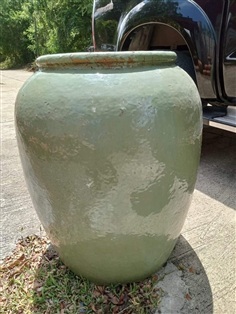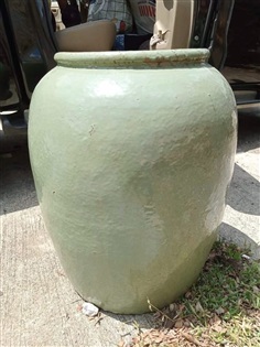 โอ่งปั้นดินเผาจีน น้ำเคลือบสีเขียวไข่กา เก่าแท้โบราณ ไม่แตกไม่ร้าว ไซต์ใหญ่ นำเข้าจากจีนโดยเรือสำเภา ช่วงสมัย ร.4 ร.5 เป็นภาชนะบรรจุสิ่งของลงเรือมาขาย แล้วไม่ได้นำกลับด้วย โอ่งเปล่าทิ้งไว้จึงกลายเป็นของล้ำค่าน่าสะสม