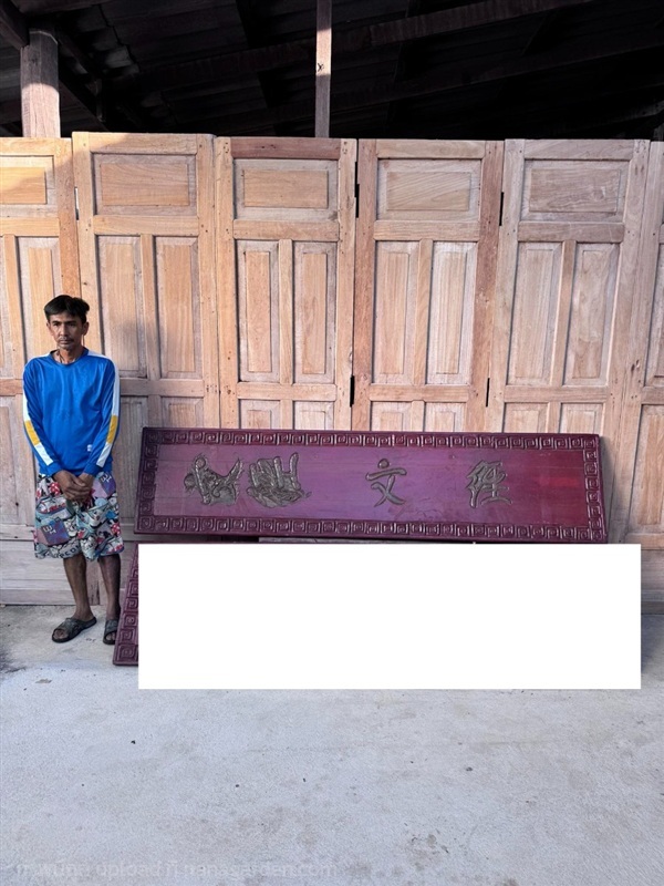 ป้ายจีนไม้สัก เหมาะสำหรับตก แต่งร้านสไตล์จีนโบราณ ตัวป้ายเป็นไม้สักแท้ทั้งชิ้นต่อจากไม้สามแผ่น งานเก่ารักษาสภาพดี