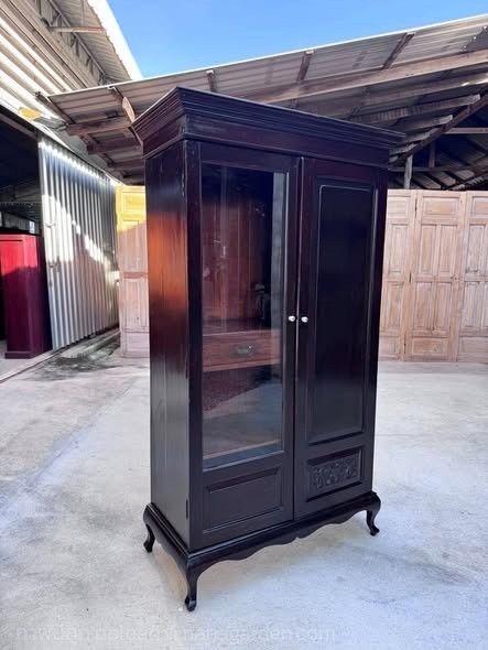ตู้เสื้อผ้าไม้สักขาสิงห์บัวสไตล์ยุโรปตู้เสื้อผ้างานเก่าด้านบนเป็นราวแขวนผ้า ถัดลงมาเป็นลิ้นชักเก็บของสองลิ้นชัก มือจับทองเหลืองแท้ ภายในมีชั้นวางสองชั้น หน้าบานเป็นลูกฟักไม้แผ่นเดียว ด้านล่างแกะลายละเอียดงามในสไตล์ยุโรป ตัวตู้ขาสิงห์บัวสง่างาม สามารถแยกออกได้สะดวกในการขนย้าย ทำสีเม็ดมะขามเดิมทั้งใบ เป็นงานไม้สักแท้ทั้งหลัง แข็งแรงและมีเอกลักษณ์ เหมาะสำหรับใช้จริงหรือวางตก แต่งบ้านสไตล์คลาสสิก