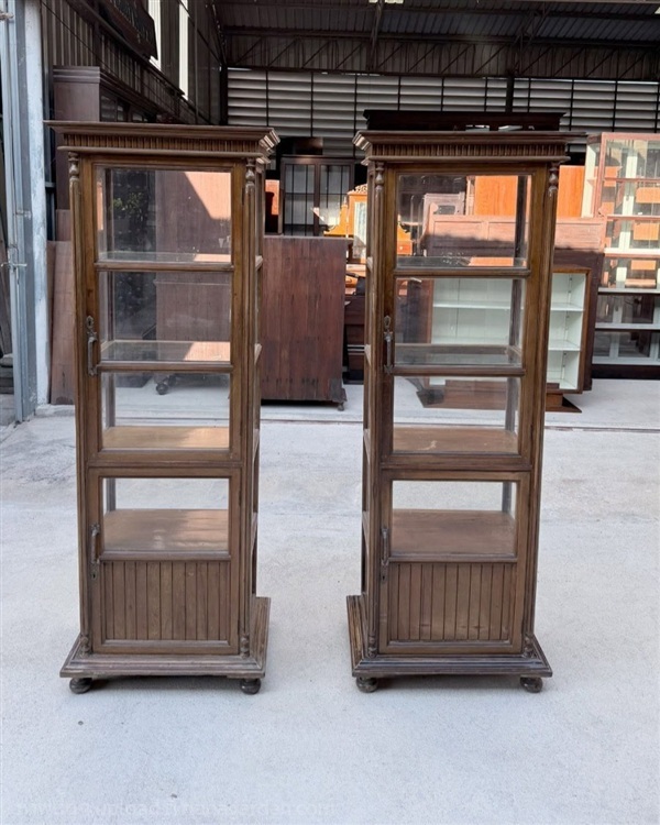 ตู้คู่เสาโรมันงานเก่าอายุประมาณ 40-50 ปี ใบนี้เป็นไม้สักทั้งหลัง สีเดิมสวย โปร่งรอบด้าน ชั้นวางสองชั้นบนเป็นกระจกช่วยให้แสดงของสะสมได้โดดเด่น ส่วนชั้นล่างเป็นไม้แบบช่องปิดทึบ จัดวางของใช้ได้เป็นระเบียบ ดีไซน์บัวรอบและเสาโรมันให้ความคลาสสิก เหมาะสำหรับใช้ในบ้าน ร้าน หรือมุมโชว์ของสะสม ขายเป็นคู่สองใบไม่แยก