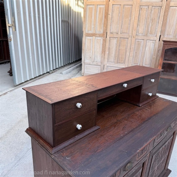 ตู้ลิ้นชักออกแบบสำหรับวางเทินบนตู้หรือโต๊ะทำงาน ด้านบนโชว์การเข้าหางเหยี่ยวแบบงานช่างโบราณ มีลิ้นชักรวม 5 ลิ้นชัก จัดวางเป็นสัดส่วน ใช้งานสะดวก เหมาะสำหรับเก็บเอกสาร ของใช้ หรือของสะสม ขนาดกำลังดี วางแล้วไม่เทอะทะ มือจับเป็นกระเบื้องแบบโบราณ สภาพโดยรวมแข็งแรง พร้อมใช้งาน เหมาะทั้งใช้งานจริงและตก แต่งมุมทำงานหรือร้านในสไตล์วินเทจ