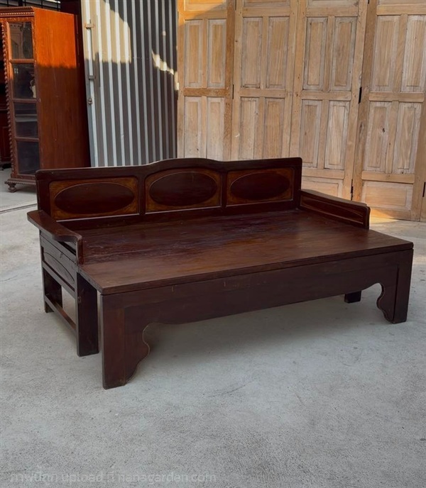 รุ่นหายากแบบดั้งเดิม ตัวพนักเป็นลูกฟักไข่สามช่อง สวยงามแบบงานประณีต สามารถใช้งานเป็นโซฟาหรือเตียงนอนได้ แข็งแรงและให้ผิวสัมผัสแบบงานเก่าที่หายากยิ่ง เหมาะสำหรับใช้นั่งเอนพักผ่อนหรือจัดวางเป็นมุมรับแขกสไตล์ไทยคลาสสิก เพิ่มเสน่ห์ให้บ้านหรือร้านได้อย่างดี