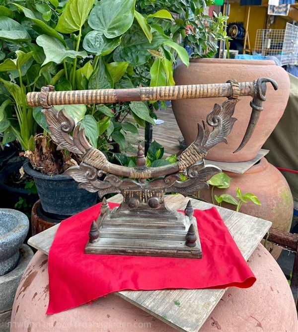 ตะขอช้างโบราณ ขอสับช้างพร้อมฐานตั้ง ไม้สัก