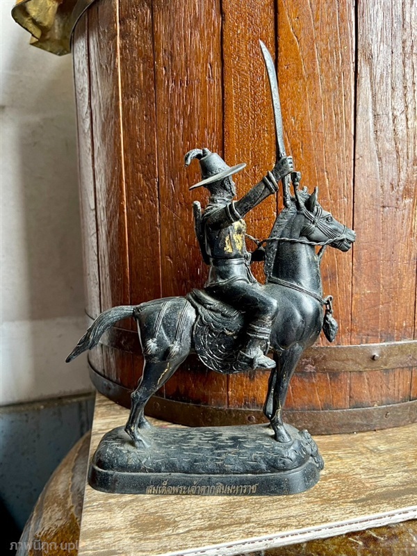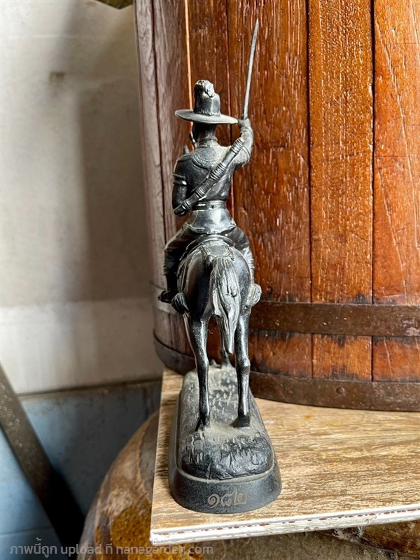 • ลักษณะ: รูปหล่อโลหะรมดำ ผิวหิ้งเดิมๆ รายละเอียดคมชัดทุกจุด ทั้งลายฉลองพระองค์ เครื่องทรงม้า