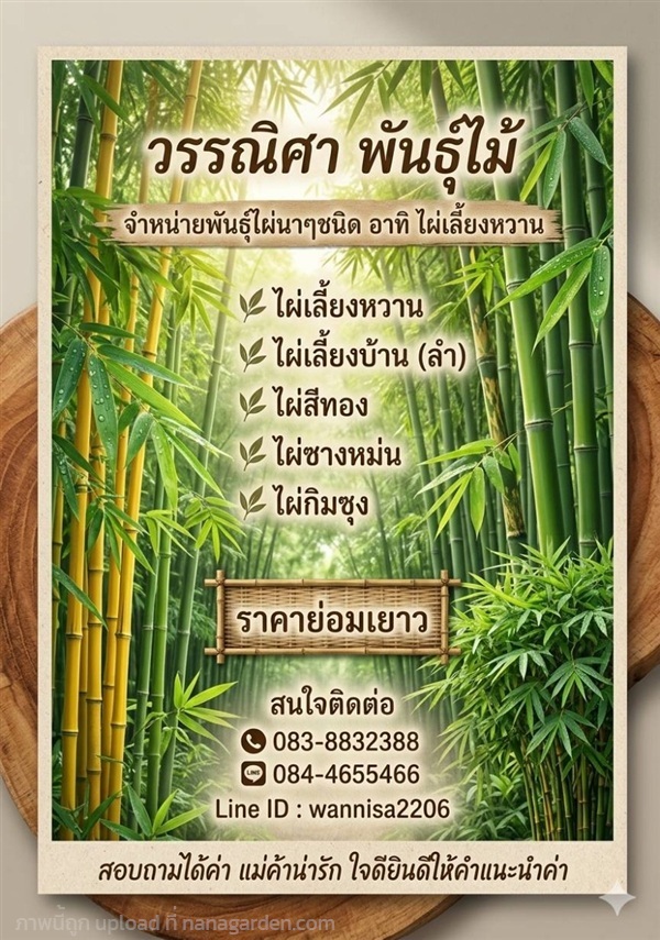 อาทิเช่น ไผ่ตง ไผ่เลี้ยงหวาน ไผ่เลี้ยงลำ ไผ่สีทอง ไผ่กิมซุง ไผ่ซางหม่น ไผ่จีน ราคาส่งตรงจากเจ้าของสวนค้า สนใจติดต่อสอบถามได้เลยค้า