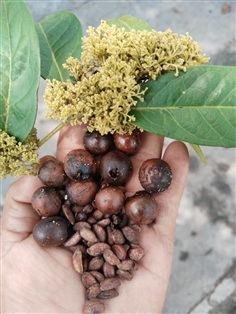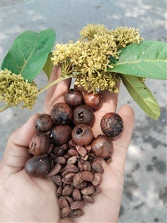 ผล: ผลมีรูปกลมหรือรูปไข่ ขนาดเส้นผ่านศูนย์กลางประมาณ 1.5–2.6 ซม. ผลแก่จะแห้งและแข็ง มีขนหนาแน่นเมื่อยังอ่อน และจะค่อยๆ เกลี้ยงเมื่อแก่
