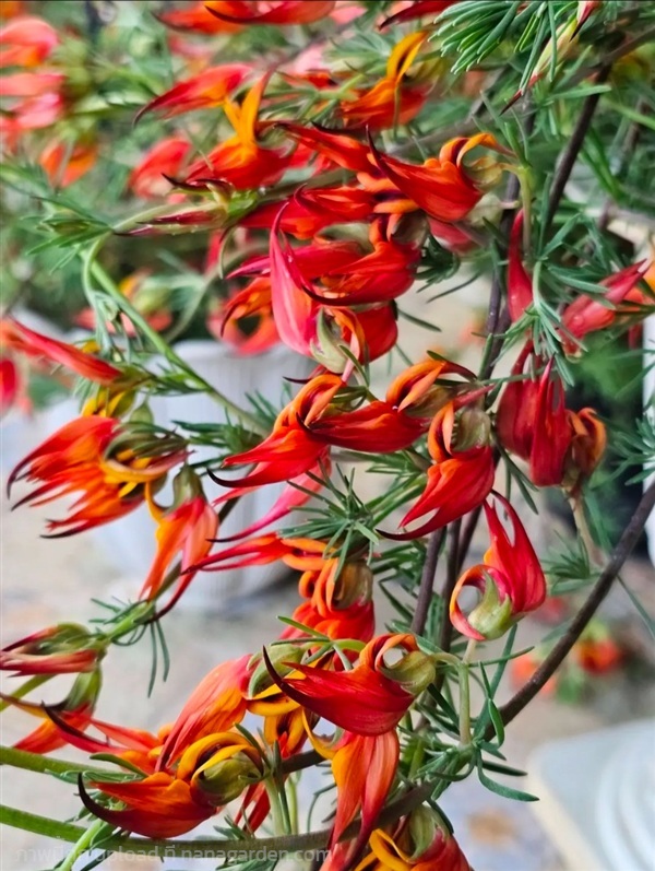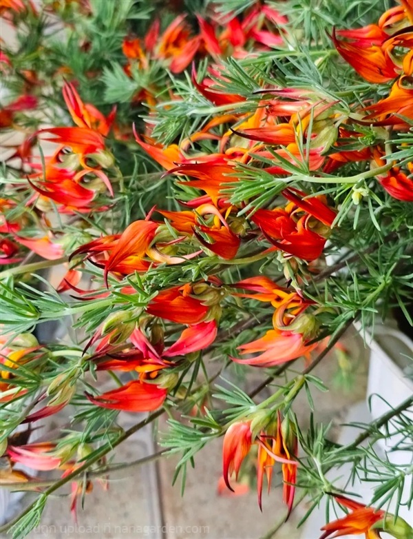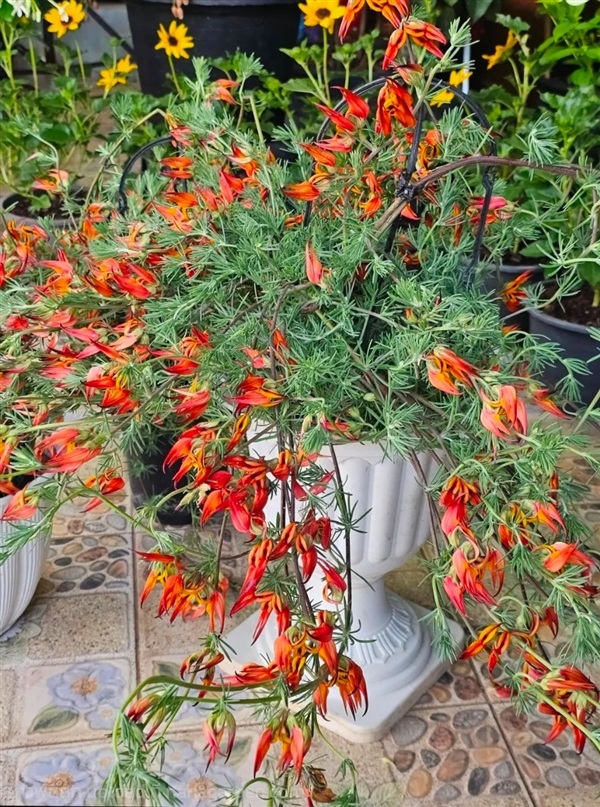ต้นปากนกแก้ว (Lotus berthelotii) ไม้เลื้อย มีดอกสวยงาม ซึ่งเป็นไม้ประดับแขวนยอดนิยม