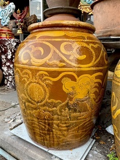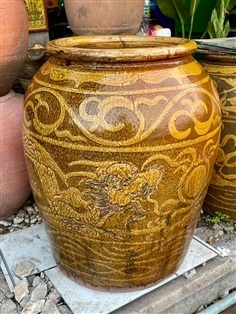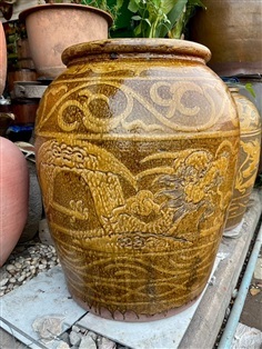 เปิดสะสม โอ่งไหหลำ ลายมังกรคู่ (โอ่งมังกร) น้ำเคลือบ ศิลปะจีนโบราณ เก่าแท้ ไซต์ใหญ่ อายุหลักร้อยปี ผลิตช่วงสมัย รัชกาลที่ 4-5 ผิวสีเหลือง-ดำมันปู