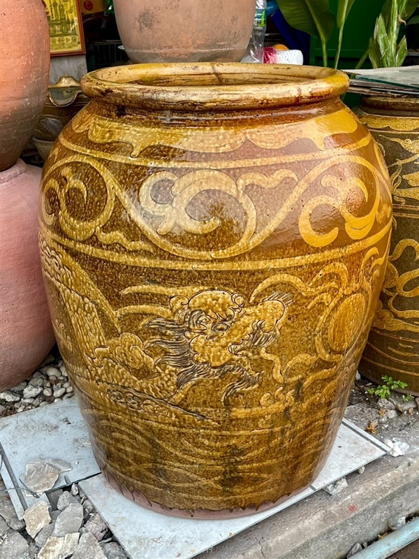 โอ่งไหหลำ น้ำเคลือบ ลายมังกรสี่เล็บ ลายมงคล (นิยมสุด) สภาพสวยสมบูรณ์ เหมาะสำหรับอนุรักษ์สะสม ตกแต่งบ้าน จัดสวน ประดับบารมี เสริมฮวงจุ้ย สร้างบรรยากาศ
