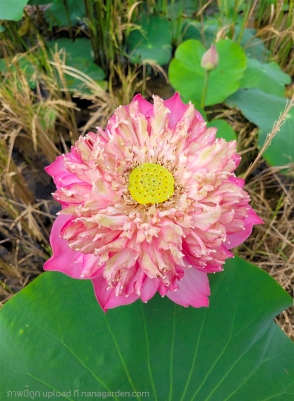 ต้น บัวหลวง สายพันธุ์ บัวสัตตบงกช หรือ บัวหลวงฉัตร ชมพู Sacred Lotus หรือ Indian Lotus ดอกซ้อน ดอกใหญ่