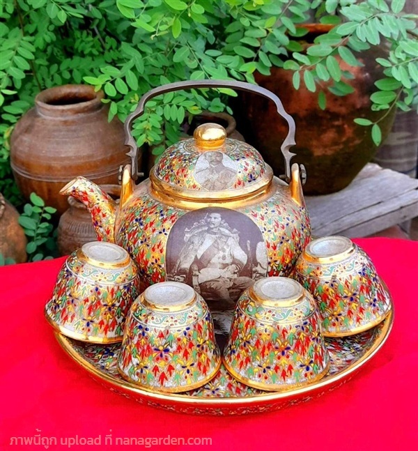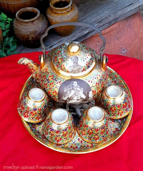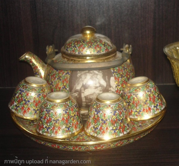 เบญจรงค์ จปร รัชกาลที่5 ชุดน้ำชาเบญจรงค์ ลายน้ำทอง