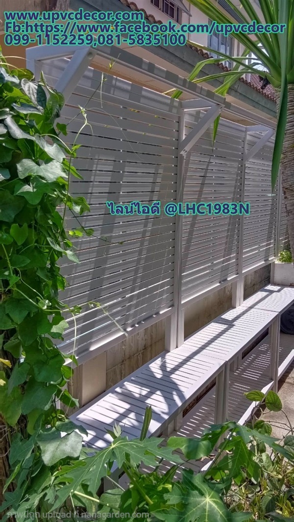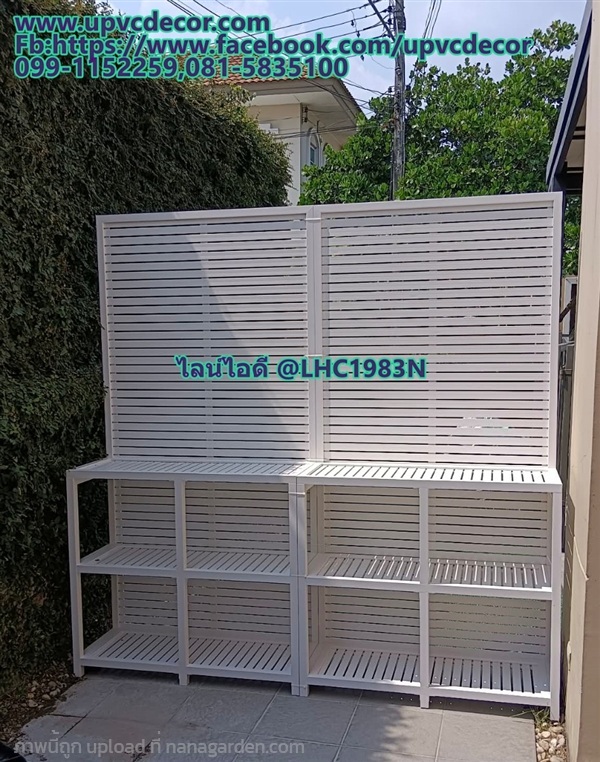 ผลิตและจำหน่าย ชั้นวางของพร้อมระแนงบังตาบังแดด ระแนงกั้นน้องหมา ระแนงกระถางบังตารั้วเตี้ย ระแนงตกแต่งบ้าน ระแนงกระถางจัดสวนแนวตั้ง ระแนงตกแต่งสถานที่ สั่งทำตามขนาดก็ได้ค่ะ ใช้งานได้ยาวนาน ตั้งวางได้เลย รั้วบังตา ระแนงกระถาง วัสดุupvc ทนน้ำ แดด ปลวกไม่กิน สีไม่ลอก ใช้ได้ทั้งในร่มและกลางแจ้ง ราคาตามขนาด สอบถามเพิ่มเติมได้ที่ ไลน์ไอดี @LHC1983N