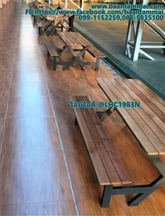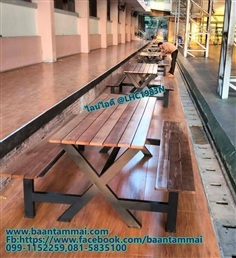 โต๊ะโรงอาหารไม้ตะแบกขาเหล็ก