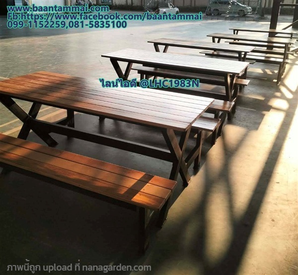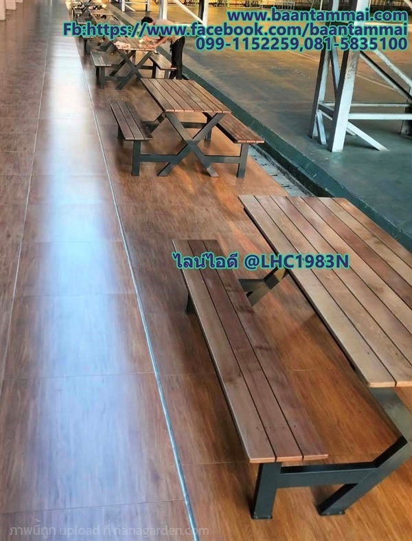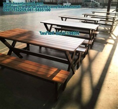 โต๊ะโรงอาหารไม้ตะแบกขาเหล็ก? โต๊ะสนามกลางแจ้งขาX