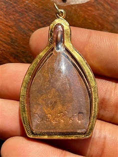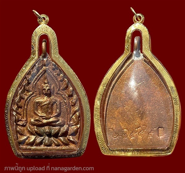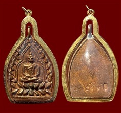 ลักษณะเป็นเหรียญหล่อพิมพ์เจ้าสัว ด้านหน้าเป็นพระพุทธรูป นั่งขัดสมาธิเพชร บนอาสนะฐานบัวคว่ำบัวหงาย ด้านข้างมีกรอบซุ้มเรือนแก้ว 2 เส้นขนานกัน กรอบซุ้มหยักเข้ารูป พระเกศองค์แหลมเรียวยาวเกือบจรดเส้นกรอบซุ้ม พระเมาลีเป็นตุ่ม มีรายละเอียดที่เส้นสังฆาฏิ พระพาหากลม ดูเข้มขลัง สง่างาม รายละเอียดคมชัดสวย หลังเรียบ