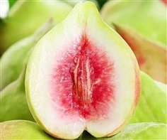 สีเนื้อ: เหลืองอ่อน ใกล้เมล็ดอมแดง