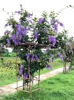 เมตร ทนแล้งได้ดี ออกดอกตลอดทั้งปีโดยเฉพาะฤดูหนาว นิยมปลูกริมรั้วหรือทำซุ้ม ชอบแสงแดดจัด แตกต่างจากพวงครามไทยตรงที่ช่อดอกแน่นกว่าและออกดอกเร็วกว่า