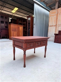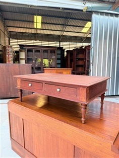 โต๊ะรีดทองงานไม้โบราณ โครงสร้างทำจากไม้เนื้อแข็งทั้งตัว หน้าโต๊ะเป็นไม้แผ่นยาว หนา แข็งแรง ปลายติดชุดกงล้อสำหรับหมุนรีดทองตามแบบเครื่องมือช่างทองสมัยก่อน มีเสน่ห์ของงานช่างยุคเก่า