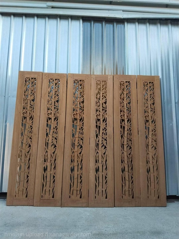 ลายยาวเต็มบานต่อเนื่องสวยงาม ให้บรรยากาศแบบจีนคลาสสิก งานฉลุโปร่งช่วยเพิ่มมิติให้พื้นที่ ดูไม่ทึบจนเกินไป ชุดนี้เป็นไม้สักแผ่นเดียวทุกบาน ลายแกะคมชัด เห็นรายละเอียดปล้องไผ่และใบได้ชัดเจน เหมาะสำหรับใช้กั้นห้อง ตก แต่งร้าน หรือจัดเป็นฉากโชว์สร้างจุดเด่นให้มุมต่าง ๆ ของบ้าน มาเป็นชุด 6 บาน ขนาดเท่ากันทุกบาน จัดวางใช้งานได้ลงตัว