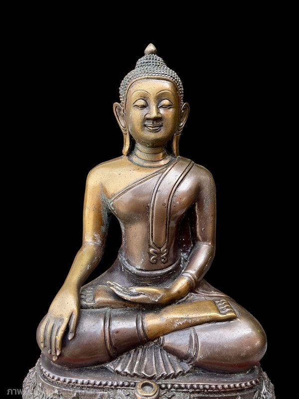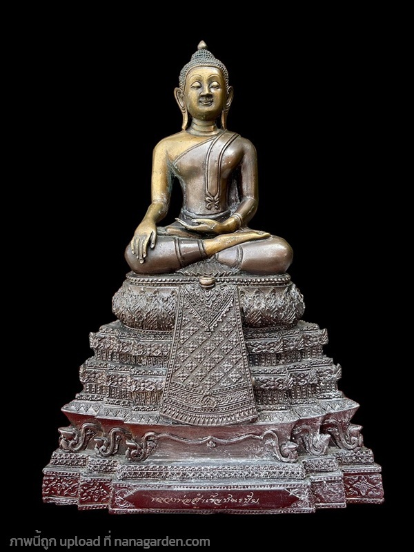 เปิดแบ่งปัน พระพุทธรูป หลวงพ่อสำเร็จชนะชัย หน้าตัก5นิ้ว เนื้อทองเหลือง (รมดำ) พิมพ์ไทย ปางบารมีมหาราชา ครองจีวรห่มเฉียง อริยาบถมั่นคง เรียวงดงาม ในท่านั่งขัดสมาธิชนะมาร (สะดุ้งมาร) ประทับบนฐานดอกบัว พระแท่นบัลลังก์ผ้าทิพย์ ผ่านพิธีพุทธาภิเษก