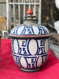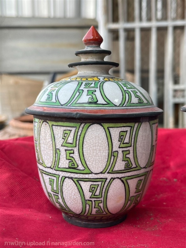 กระปุกดินเผาน้ำเคลือบสี ลายตัว