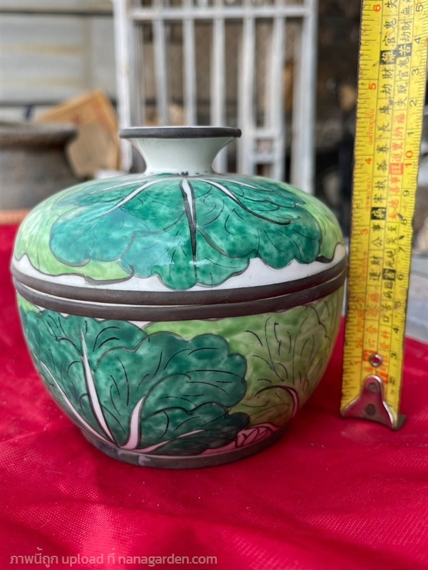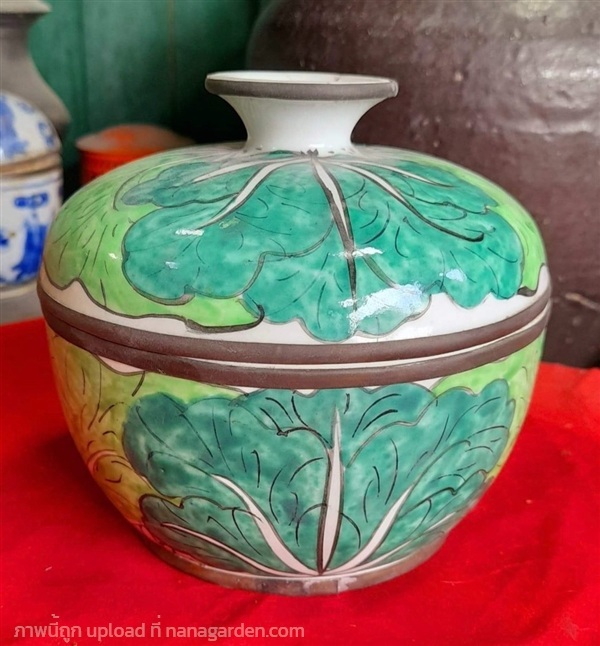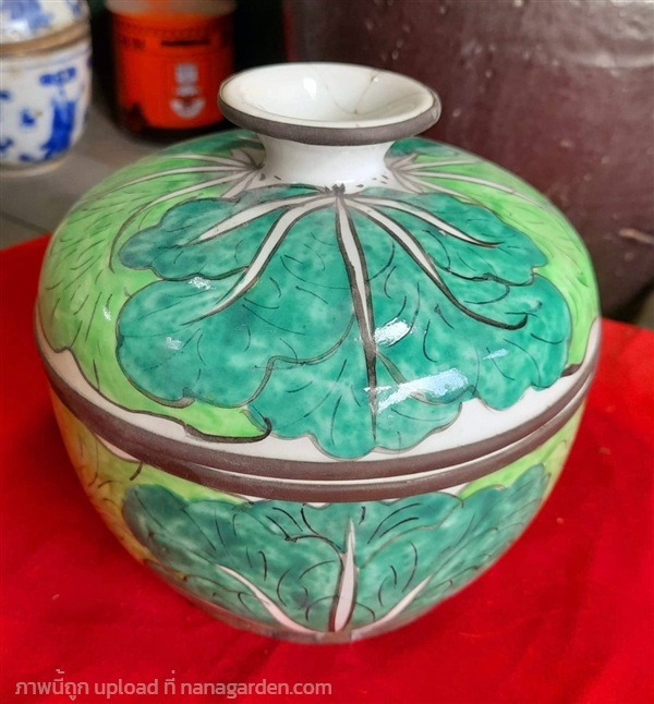 เปิดสะสม กระปุกดินเผาโบราณ ลายผักกาด กวางตุ้ง (แปะฉ่าย) กระปุกน้ำเคลือบดินเผา ลงสี งานเก่าสมัยรัชกาลที่5 สวยเดิม อายุยาวนาน