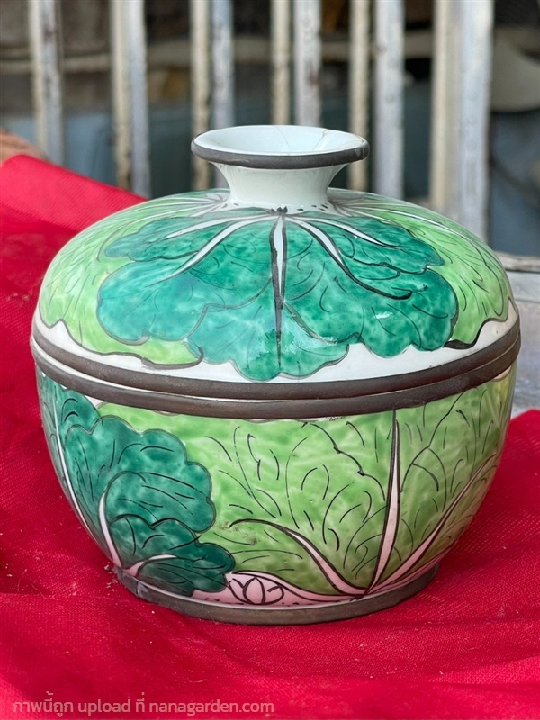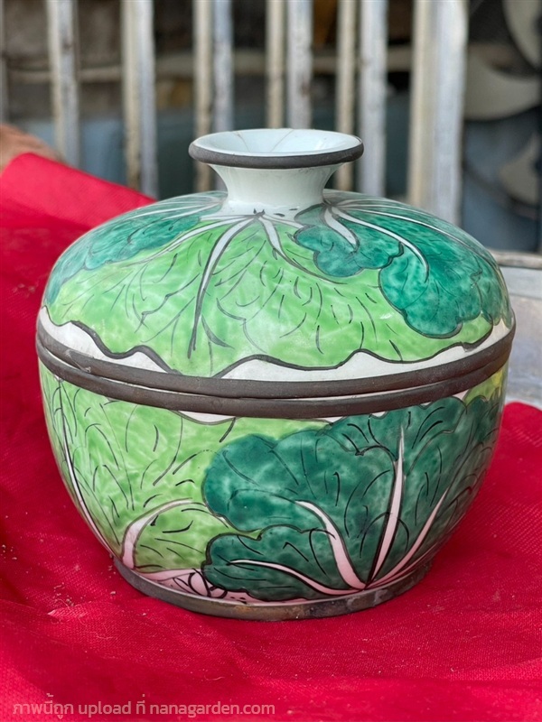 เปิดสะสม กระปุกดินเผาโบราณ ลายผักกาด กวางตุ้ง (แปะฉ่าย) กระปุกน้ำเคลือบดินเผา ลงสี งานเก่าสมัยรัชกาลที่5 สวยเดิม อายุยาวนาน