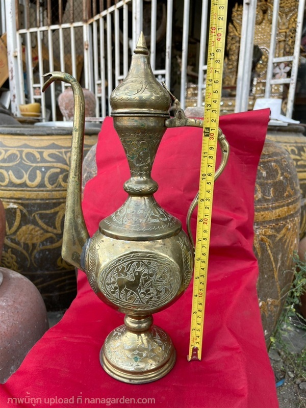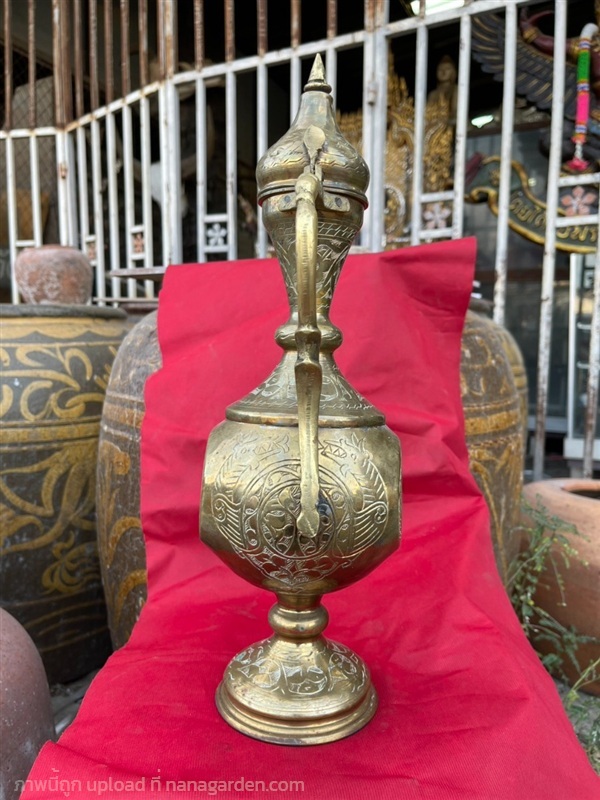 กาทองเหลืองโบราณ ใบใหญ่ ศิลปะอาหรับ ทรงสูง แกะลาย