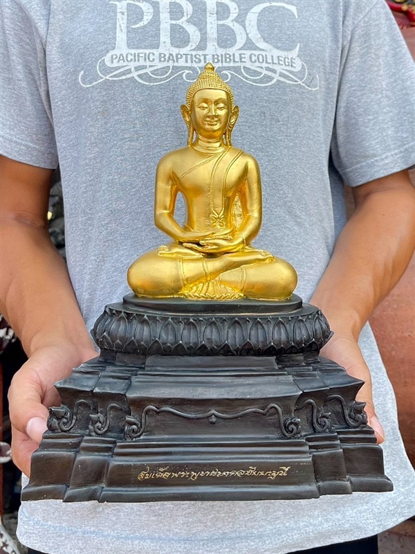 เปิดแบ่งปัน พระพุทธรูป สมเด็จพระพุทธมงคลชัยยะมุนี วัดเกาะเค็ดนอก ปราจีนบุรี หน้าตัก5นิ้ว เนื้อทองเหลือง (รมดำปิดทอง) ปี2566 พิมพ์ไทย