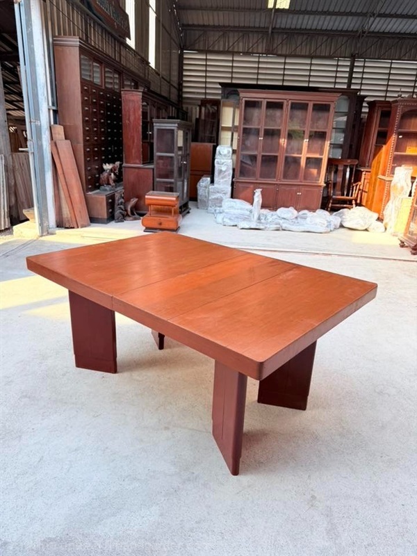 โต๊ะชักไม้สัก งานเก่า อายุ 50 ปีขึ้นไป ทรงแปลกหายาก ดีไซน์เรียบ แต่มีเอกลักษณ์ สามารถขยายหน้าโต๊ะเพิ่มพื้นที่ใช้งานได้ เหมาะสำหรับใช้งานอเนกประสงค์ทั้งเป็นโต๊ะรับแขก โต๊ะทานอาหาร หรือจัดวางในร้านสไตล์วินเทจ ตัวงานเป็นไม้สักทั้งตัว งานเก่าแท้ แข็งแรง ใช้งานได้จริง โครงสร้างแน่นตามแบบงานยุคเก่า ปัจจุบันพบเจอได้ยาก