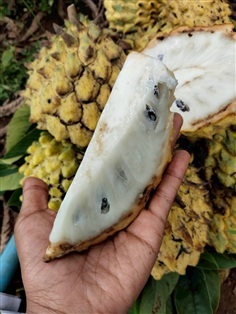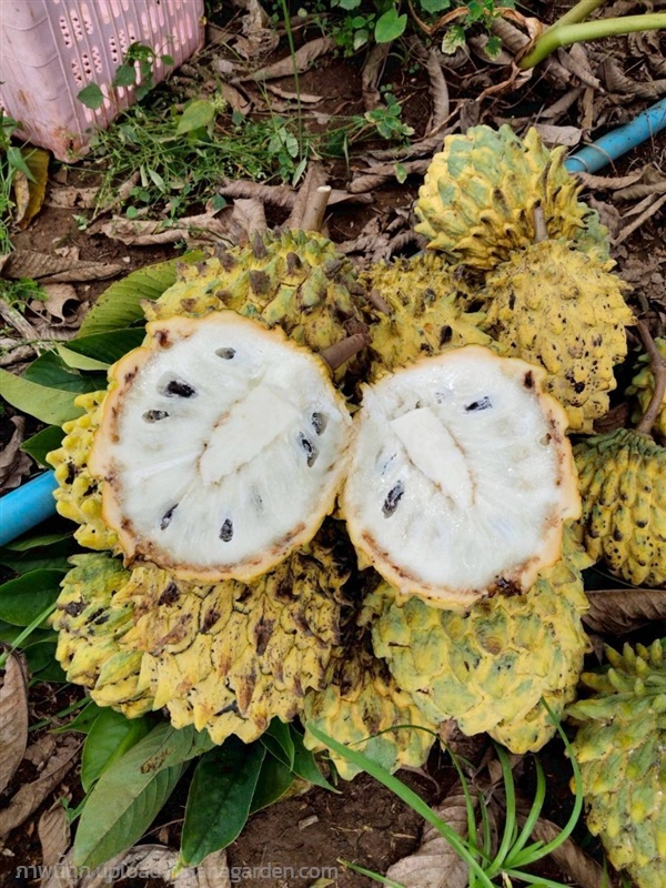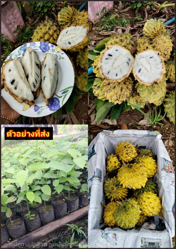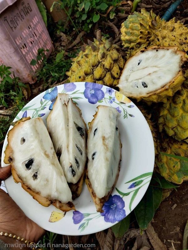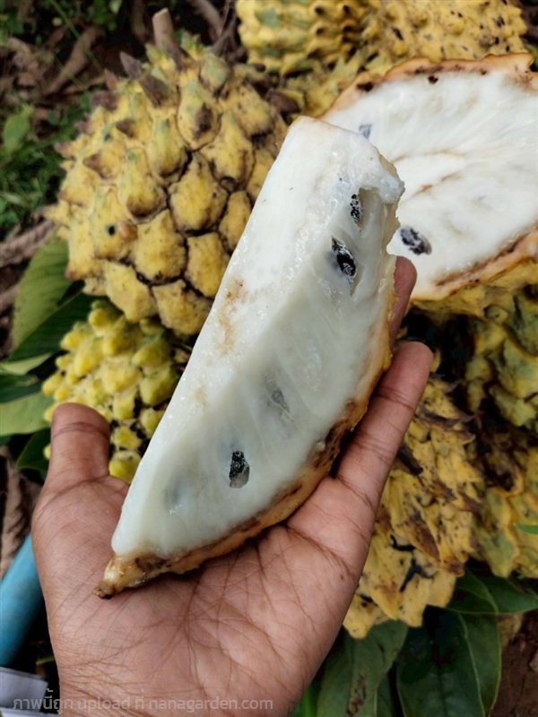 เป็นน้อยหน่ายักษ์ ผลขนาดใหญ่ รสชาติหวาน ละมุนไม่มีเสี้ยน รูปร่างคล้ายทุเรียน