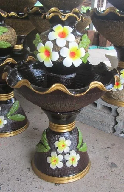 กระถางน้ำพุ 2ชั้น ติดลายดอกลีลาวดี