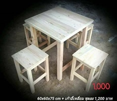 โต๊ะไม้สน ขนาด 60x60 +เก้าอี้ 4 ตัว ชุดละ 1000 บาท