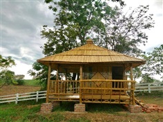 บ้านไม้ไผ่ทรงกลมุงหญ้าแฝกติดแอร์ได้ป้องกันมอดได้ถาวร
